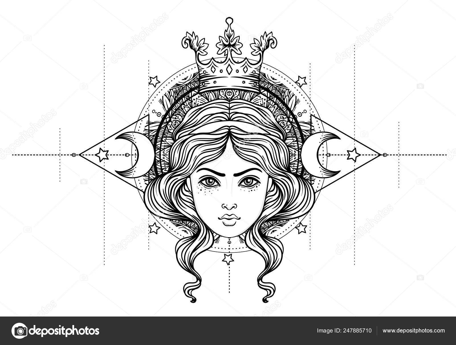 Divine Goddess Black And White Girl Over Sacred Geometry Sign Isolated Illustration Tattoo Sketch Mystical Symbol Stock Illustration Illustration Of Hand Medieval 140638360